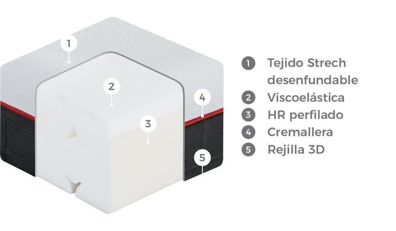 | Caracteríticas | Doble Cara, Hipoalergénico, Reinforced Frame, Stretch, Viscoelástico |