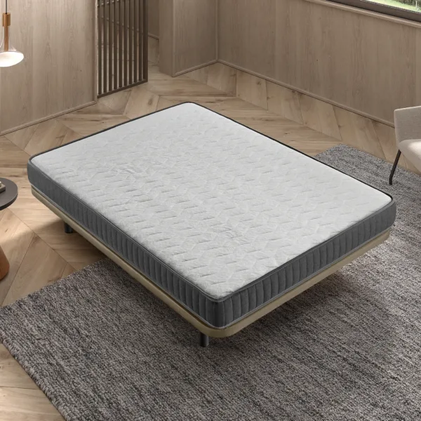 El colchón Eco 18 es una opción práctica, diseñado con un núcleo de HR de 20k que ofrece un soporte adecuado para un uso funcional y versátil. Su diseño reversible permite utilizar ambas caras, lo que ayuda a prolongar su vida útil. Este modelo se entrega enrollado, facilitando su transporte y almacenamiento.