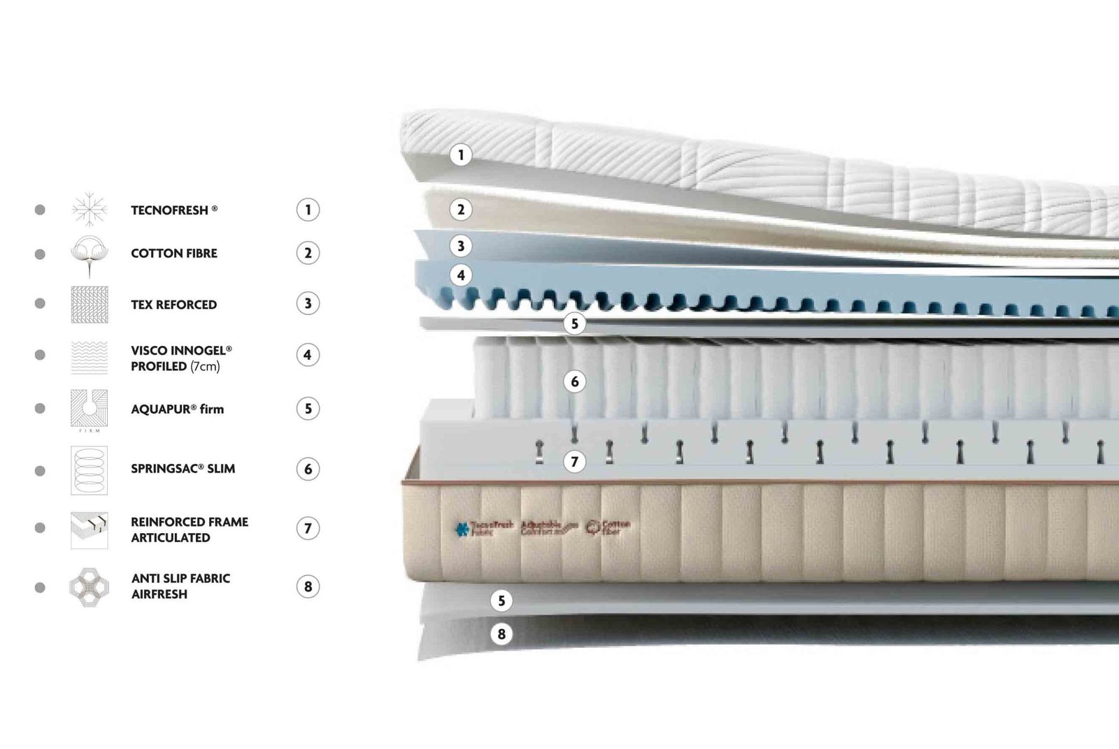 | Caracteristicas | Aquapur Firm, CottonFiber, Desenfundable, InnoGel, Reinforced Frame, TecnoFresh, Tex Reforced |