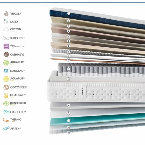 Level Top Firm combina la elegancia de su topper integrado con materiales naturales de alta gama. Su núcleo DualSac® Firm, con muelles dispuestos en forma de onda, ofrece el soporte necesario en cada zona del cuerpo, mientras que la capa de fibra de coco potencia la firmeza, reforzando la estabilidad y la durabilidad del colchón. Una pieza diseñada para quienes buscan un descanso sólido, profundo y equilibrado. Nuestra mejor sensación para un descanso confortable y firme.