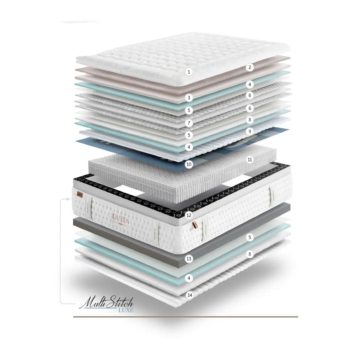 Gracias a su capa de nanomuelles, el colchón se adapta al máximo al durmiente para garantizar el máximo descanso. Su interior está compuesto por un núcleo de muelles ensacados con 9 zonas de confort que otorgan diferentes firmezas en función de las partes del cuerpo.