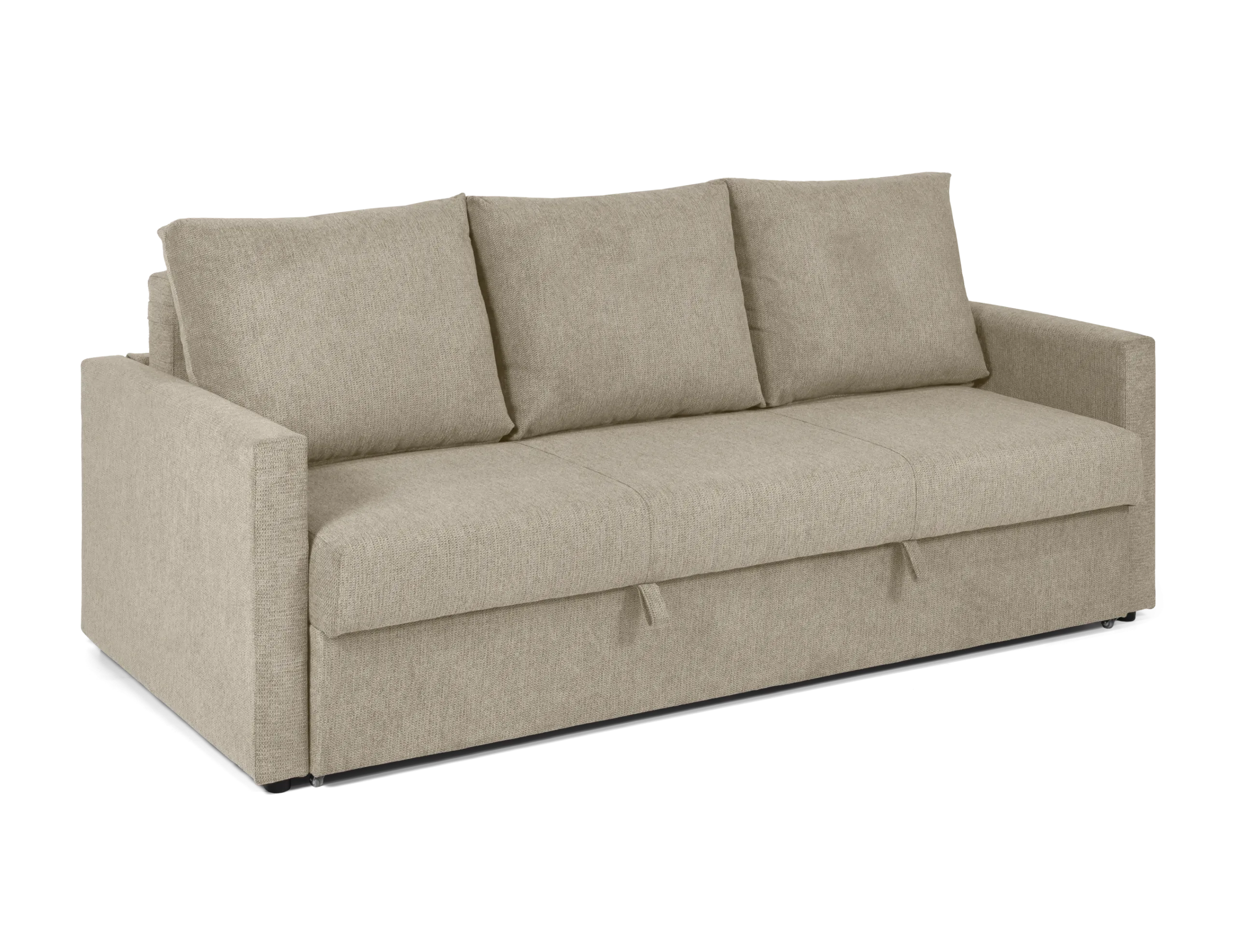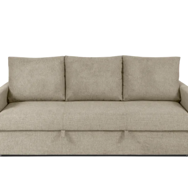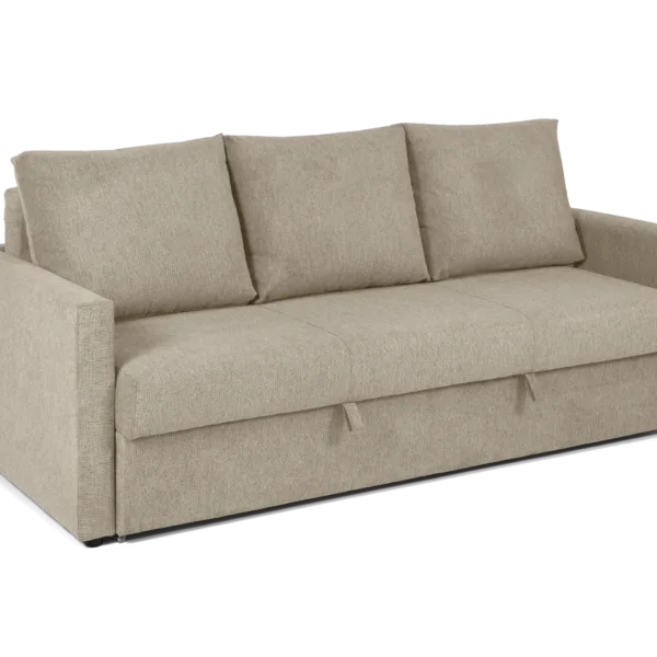 El sofá-cama Saba es una solución funcional y compacta para espacios que requieren practicidad sin renunciar al diseño. Su estructura está fabricada en madera de pino macizo y el tapizado en tela STAR Easy Clean garantiza durabilidad y fácil mantenimiento. Los respaldos están rellenos de gomaespuma picada, y el asiento incluye espuma HR de 25kg suave, ideal para un uso diario.