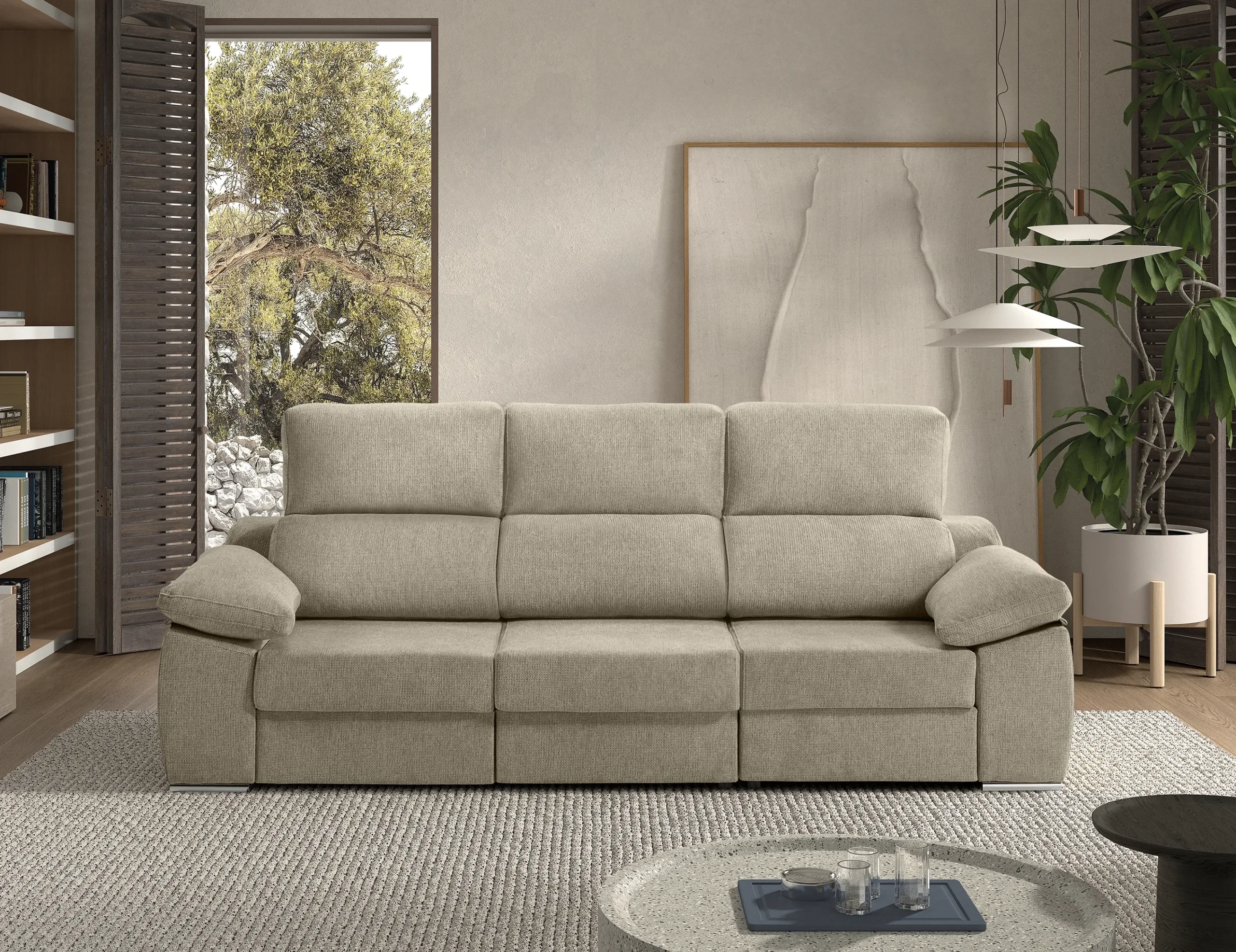 Incluye cabeceros reclinables y asientos deslizantes con carro al suelo, permitiendo adaptar la postura al gusto del usuario. Además, es totalmente desenfundable para facilitar su mantenimiento. Las patas metálicas cromadas aportan un acabado moderno y elegante.