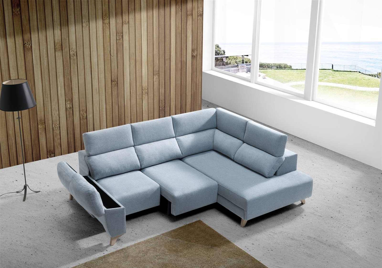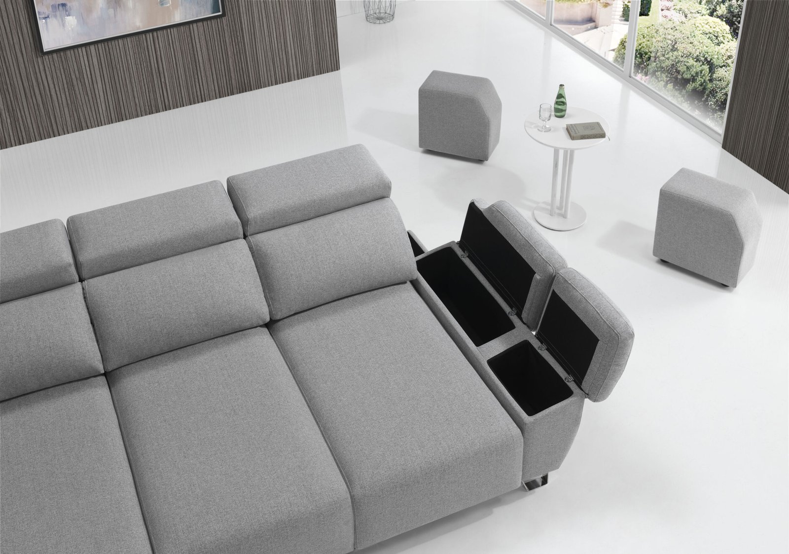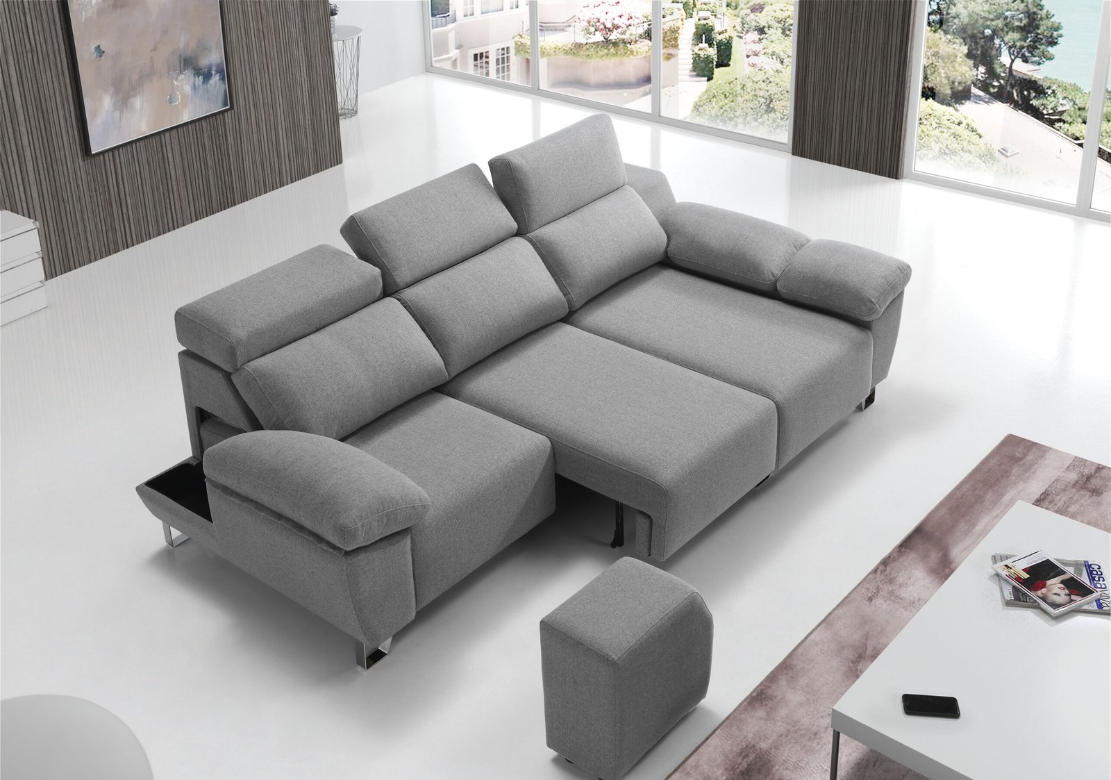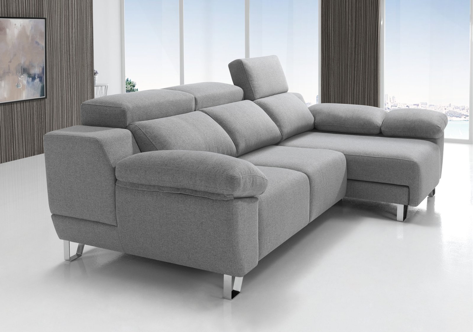 Incluye detalles premium como sus patas metálicas Niza en color cromo de 13 cmbrazos con arcón y extraíble, y cabezales reclinables multiposición que se adaptan a cada postura.