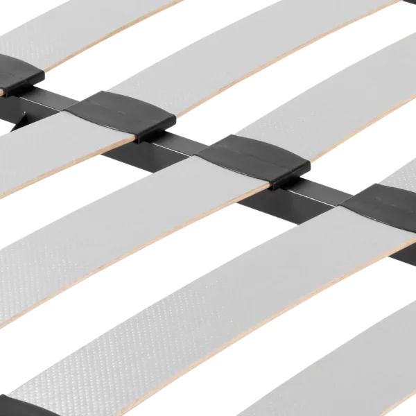 El somier Euro 7 combina funcionalidad y robustez, construido con tubo acerado de 40x30mm y láminas de haya de 7cm firmes, optimizadas para el soporte. El somier también incluye tacos integrados de polietileno HQ y un acabado en papel grafito. La barra central de refuerzo proporciona estabilidad adicional en las medidas de 135 cm o superiores.